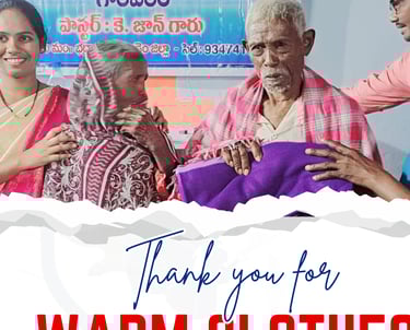 In 2024 and 2025, WMS India has joyfully distributed over 300 warm clothes and blankets to children, elderly citizens, widows, and families in need. Every garment was delivered through our AME India churches and mission points with prayer and love.